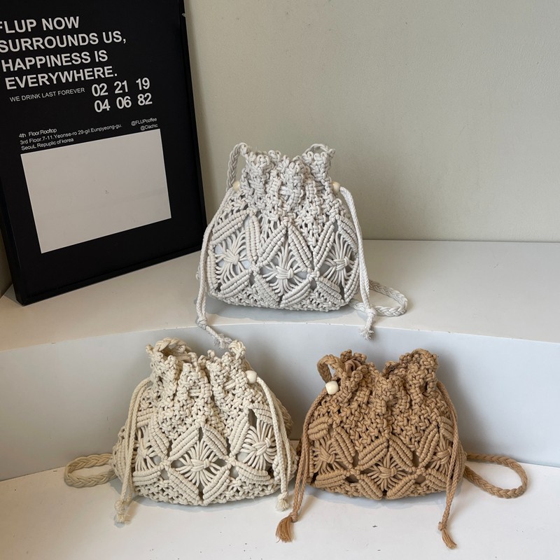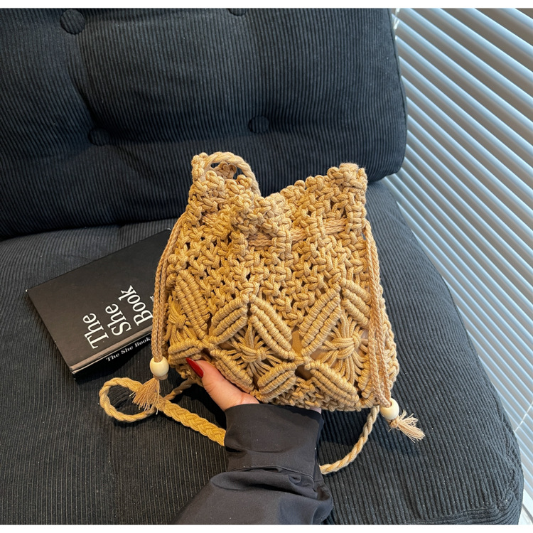 These woven bucket bags combine traditional Chinese handicraft with modern design. Perfect for summer seaside outings, they exude a popular forest – style charm.