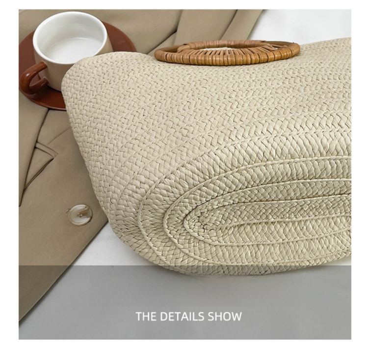 This straw handbag showcases traditional Chinese rattan – weaving craftsmanship. The circular handle symbolizes completeness. Blending with modern ins – style aesthetics, it’s a trendy fusion of heritage and fashion.